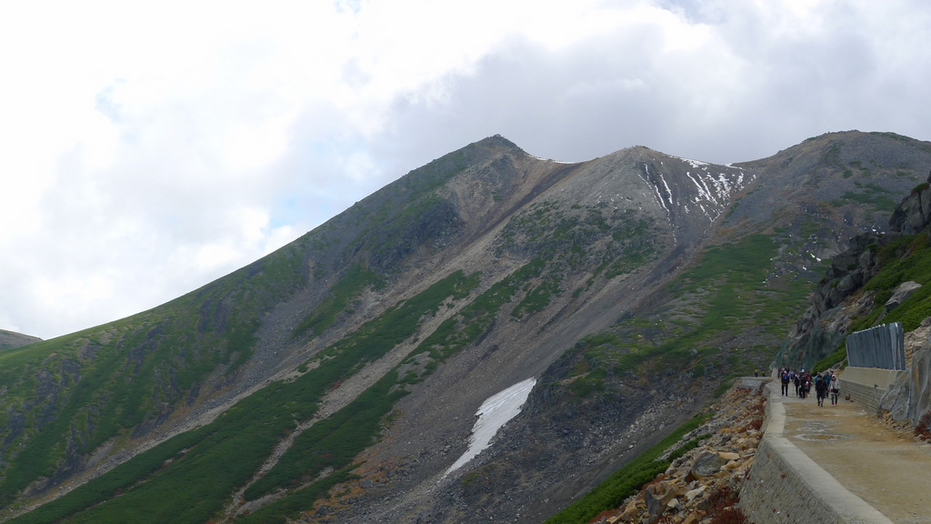 真ん中に見えているのは雪渓で、山の上にある雪は前日に降った残雪なのです。