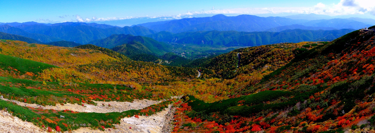 この補色の彩りの際立ちは、他の山岳紅葉スポットにはない乗鞍紅葉が演出する大きな魅力です。