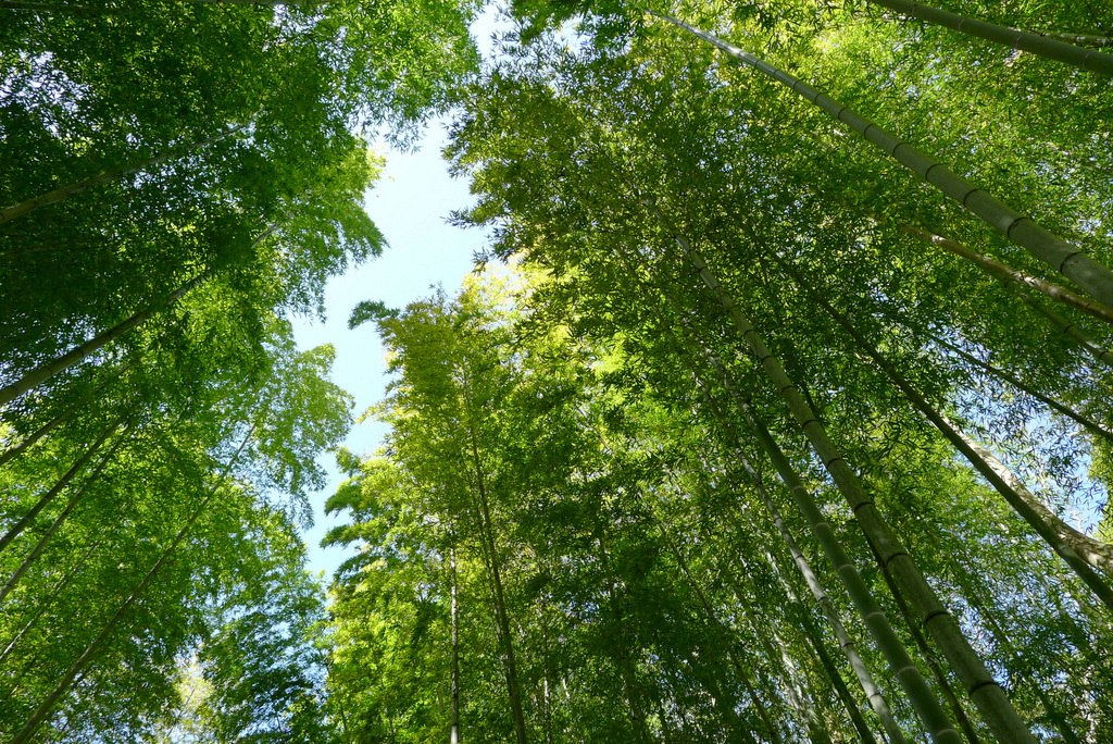 途中にあるウッドスペースに寝っころがって上を見上げると、青空と緑の竹に気持ちが落ち着きますねー
