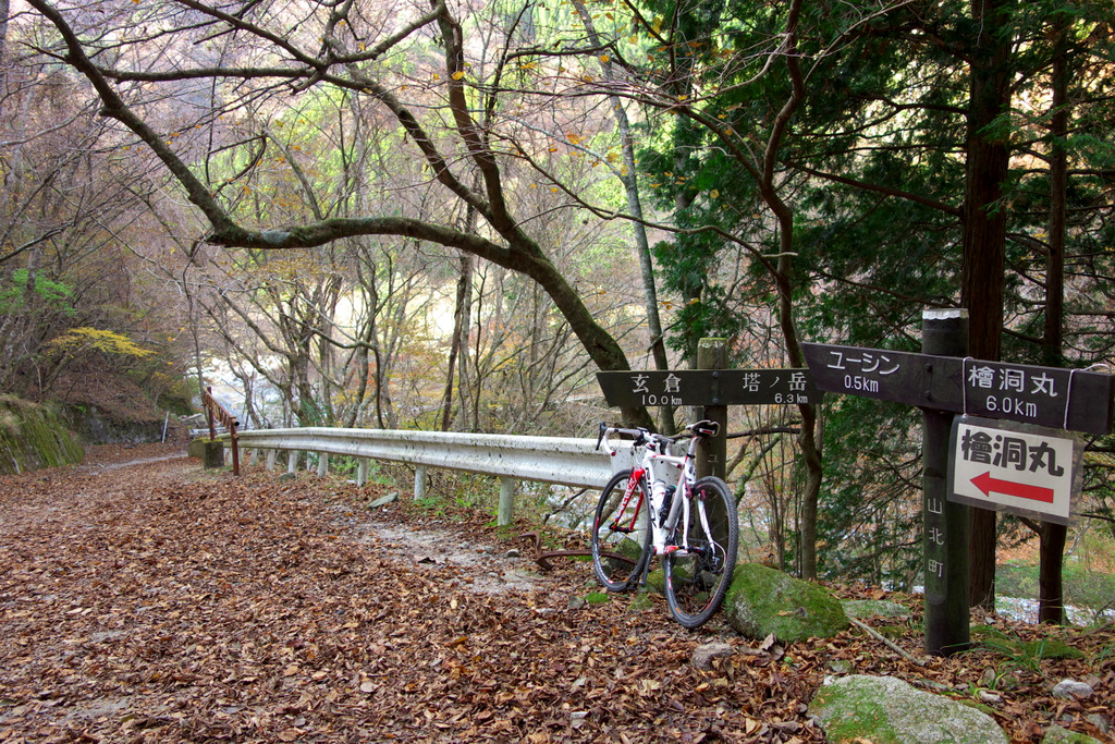 そして、玄倉林道の終点部、 ユーシンロッジへの分岐点。 辺りの木々も完全に葉が散っていました。