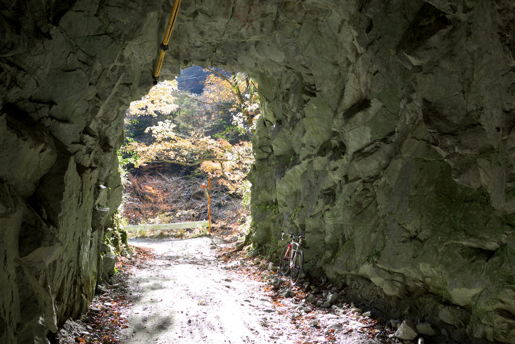 玄倉林道には、9箇所のトンネルがあり、また所々に美しいミニ滝があります。