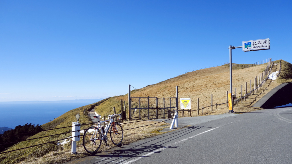 仁科峠の周囲はクマザサの高原が広がっていて眺望にも恵まれ、黄金崎や宇久須港、駿河湾や富士、南アルプス連峰が望め、伊豆でも最も美しい峠とも呼ばれています。