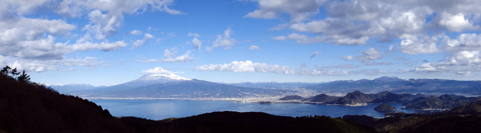 戸田峠からしばらく上って尾根筋に出ると、視界が開けてこんな大パノラマがドカーンと待ち受けてる。