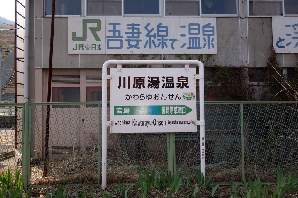 《吾妻線の車窓から停車駅でワンショット》