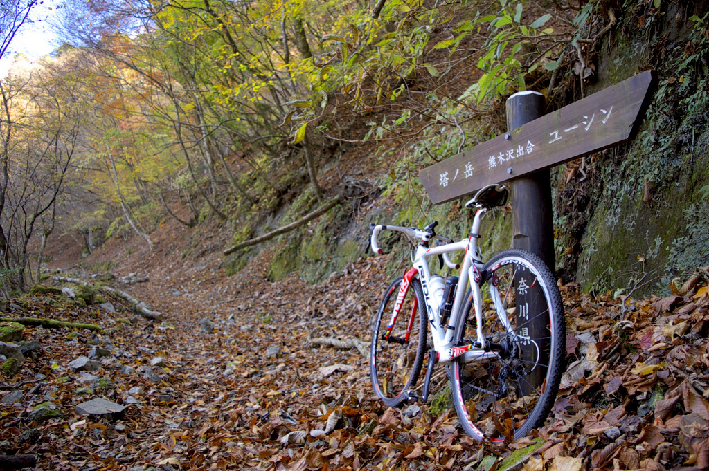 近くにMTBがデポしてあった。ここまで自転車で来て、塔ノ岳に登っているみたいです。