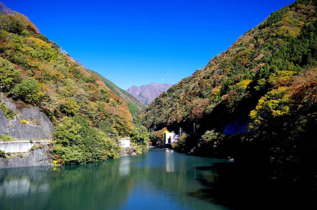 ユーシン渓谷は丹沢湖へ流れ込む玄倉川上流にあり、新緑と紅葉の頃には特に美しい景観を見せてくれる。 途中には真っ暗なトンネルがあったり、ダムや発電所があったりと、渓流の音を聞きながら楽しく紅葉狩りができるルートなのだ。