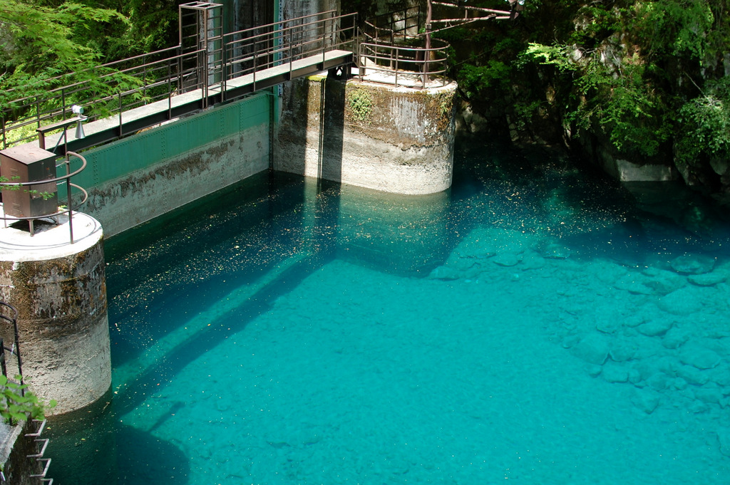 ダムの上流側は、ターコイズブルー、あるいはエメラルドグリーンの水面が見られるんだけど、今日は陽の差し具合がイマイチで期待していた色には程遠いね・・・