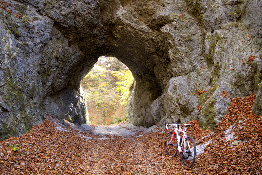 発電所へ渡る橋を見送って更に玄倉林道を進んでいくと、岩盤に開けられた素掘りの短いトンネル、第4号隧道があります。