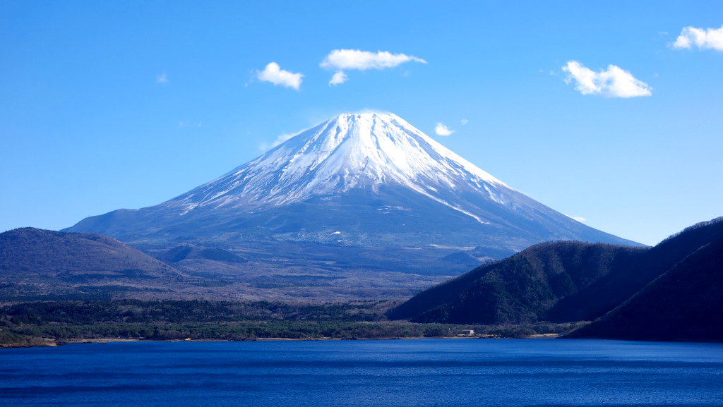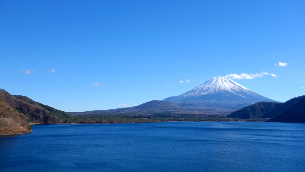 富士五湖の中で最大の湖で富士山からの距離が最も近く、末広がりの大きな富士山が見えるスポットです。