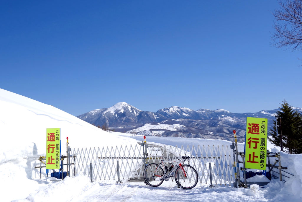 八島ヶ原湿原の駐車場に到着。 ここから先は冬期通行止めです。開通予定は4月24日となります。