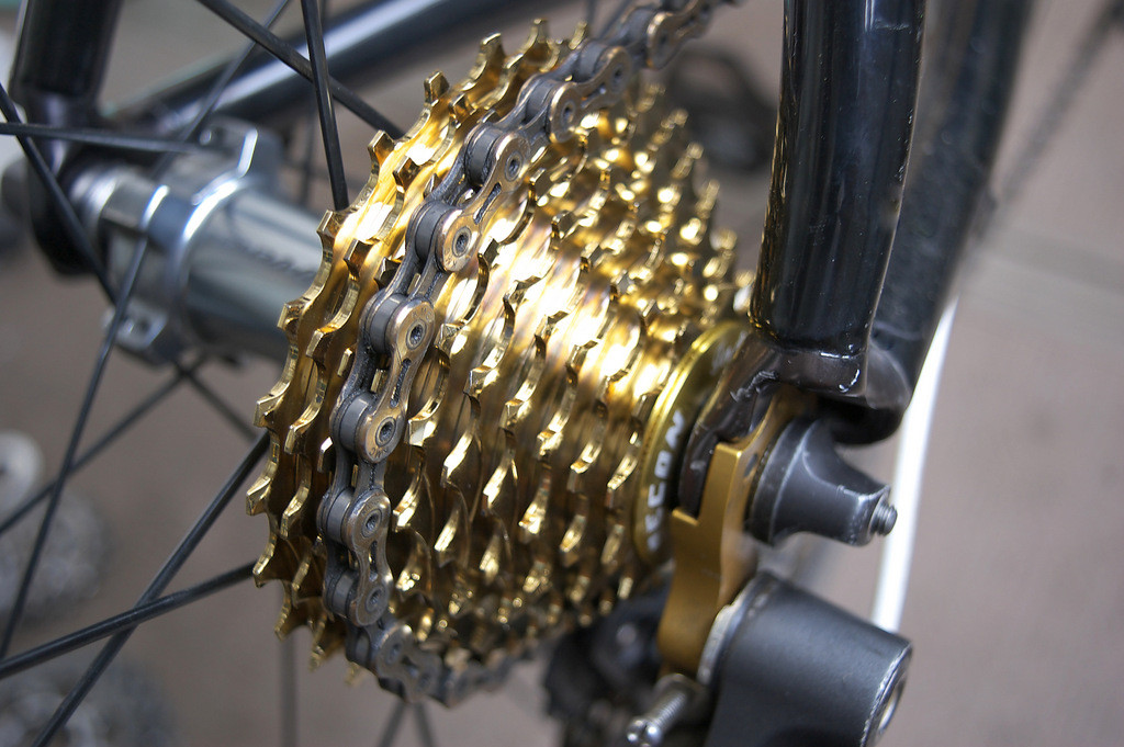 チェーンもチタンコーティングが施されているのを使っていてゴールド!ww