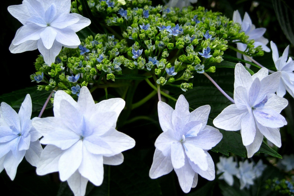 周辺の花びらだけが開き、それがちょうど額縁のように見えることから「額紫陽花」と名づけられた。