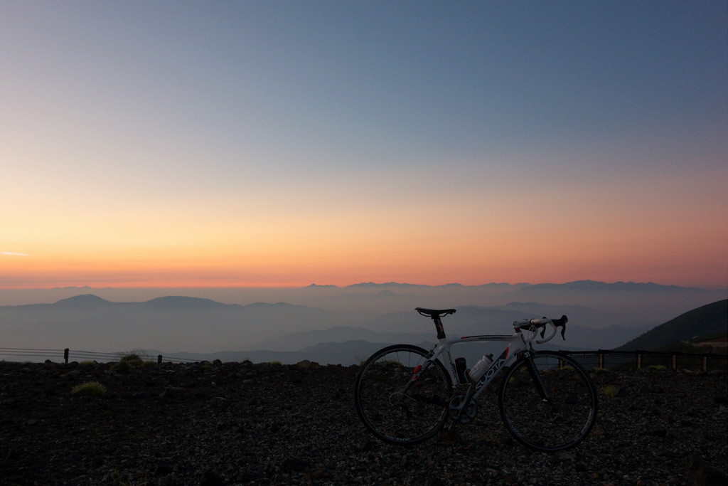 オレンジの朝日を浴びる乗鞍岳や、中央アルプスや南アルプスを眺めながら少し走ってみました・・・