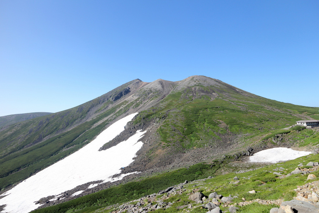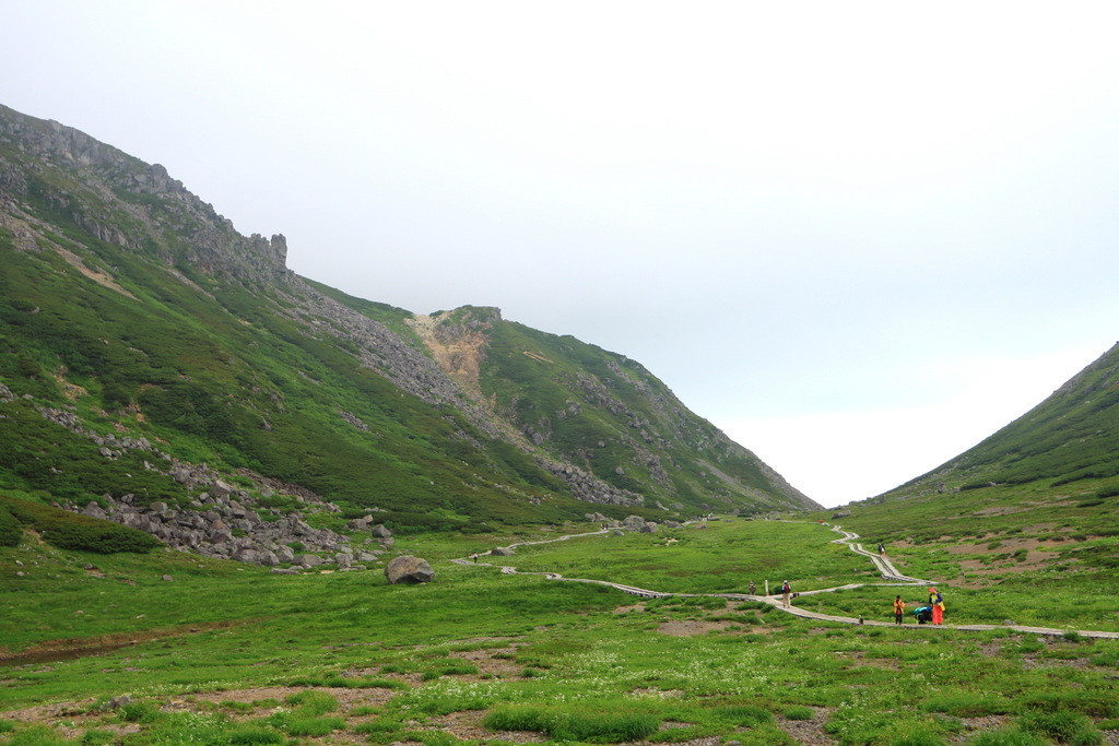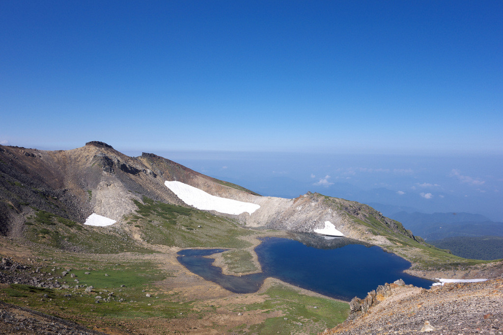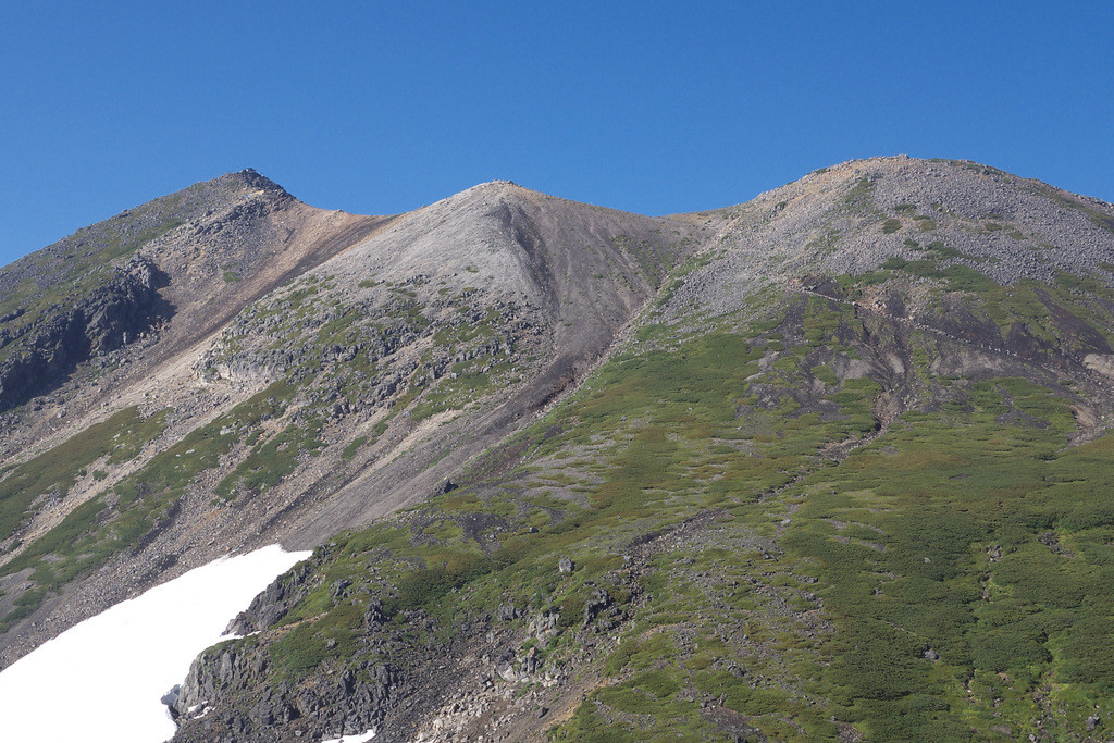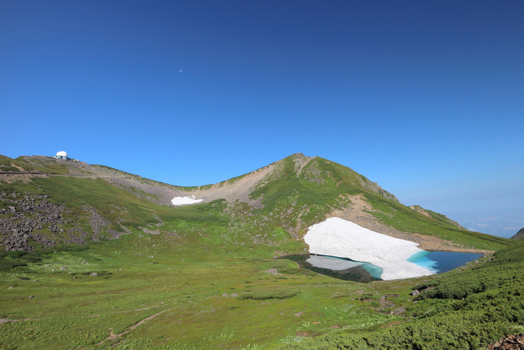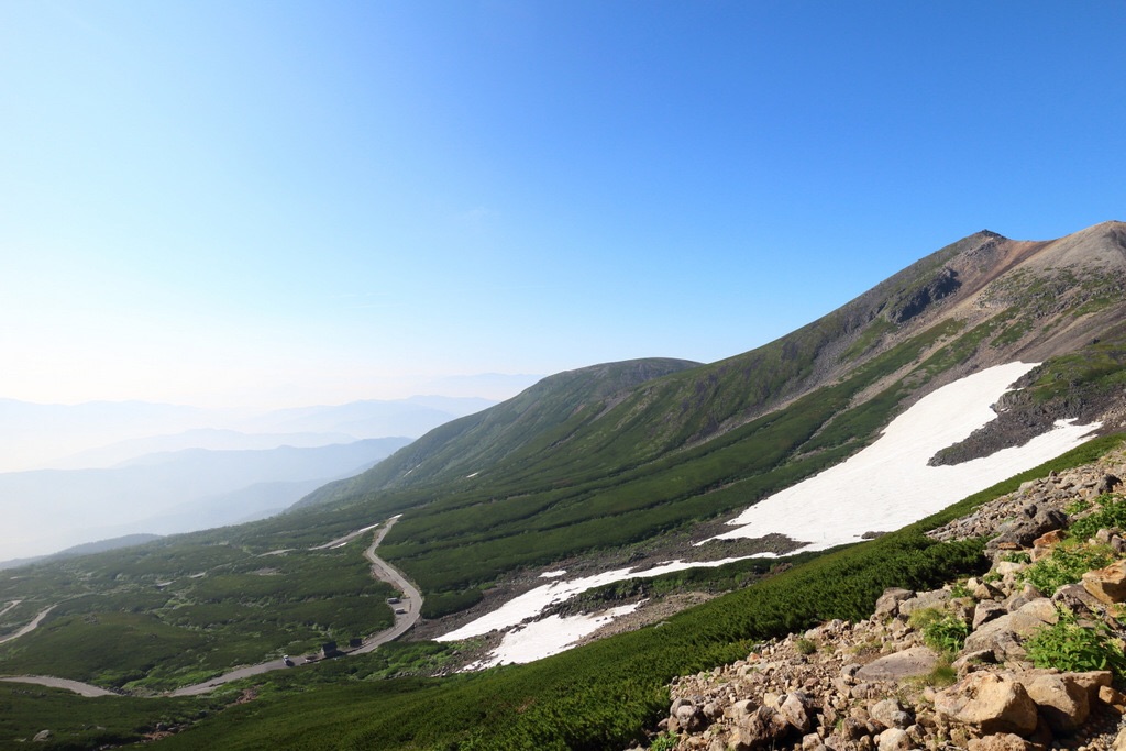 夏でも雪が残っていたり、頭上には空と雲しかない開放的な空間が広がっていたり、天候の変化を体感したり・・・、可憐な高山植物たちとの出会い(クマの出会い)も待ってる。