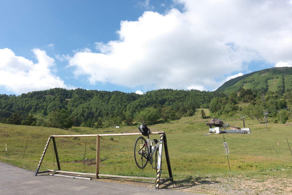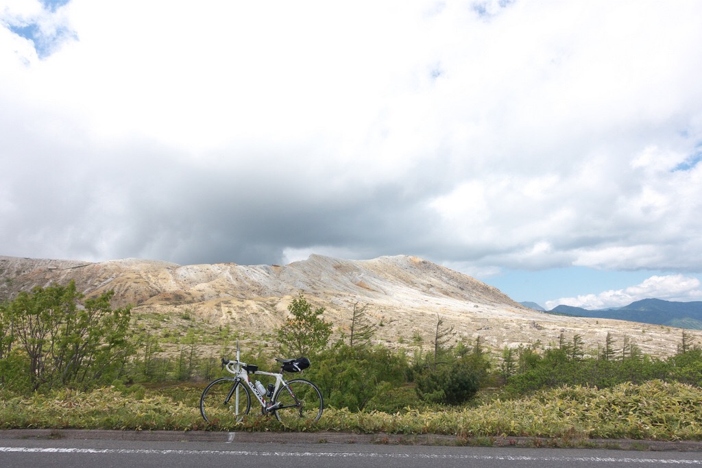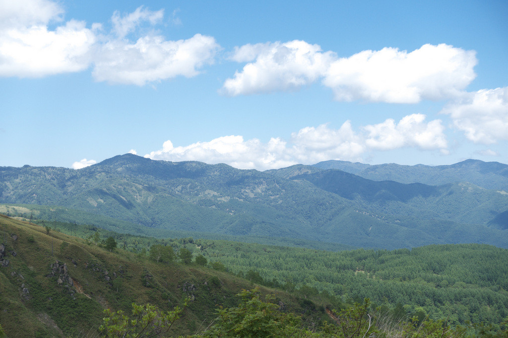 遠くには、さっきまで走っていた草津白根山の道筋が見えますねー
