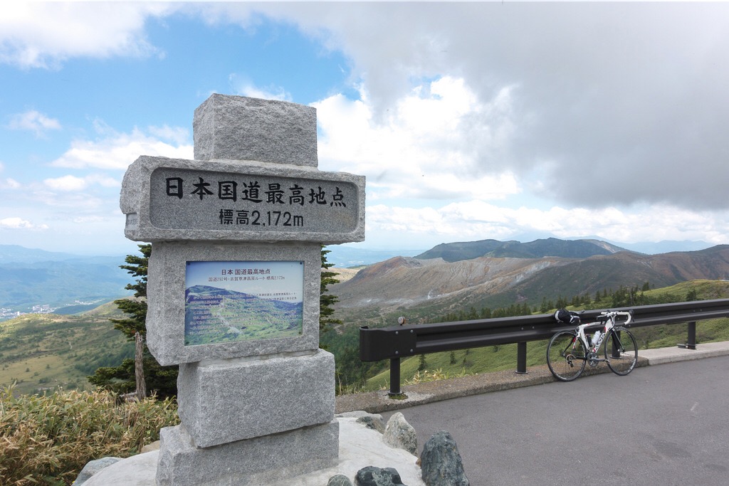 国道最高地点(標高2172m)を通る道路は、北アルプスや上州の山並み、富士山までも眺望できる。