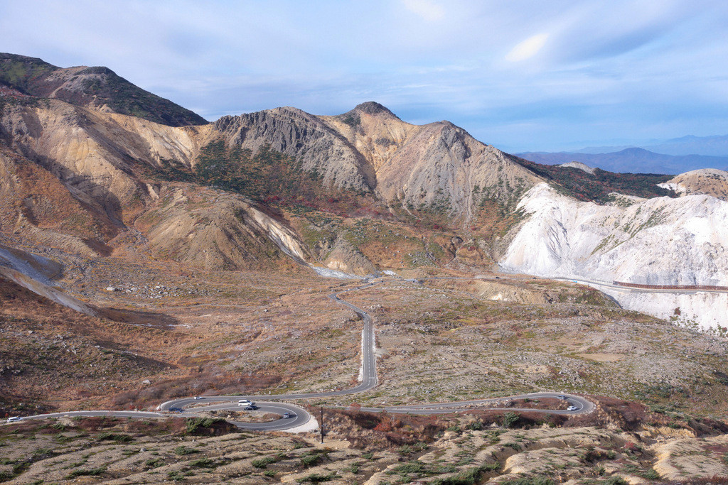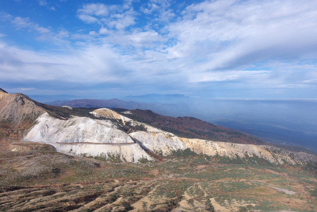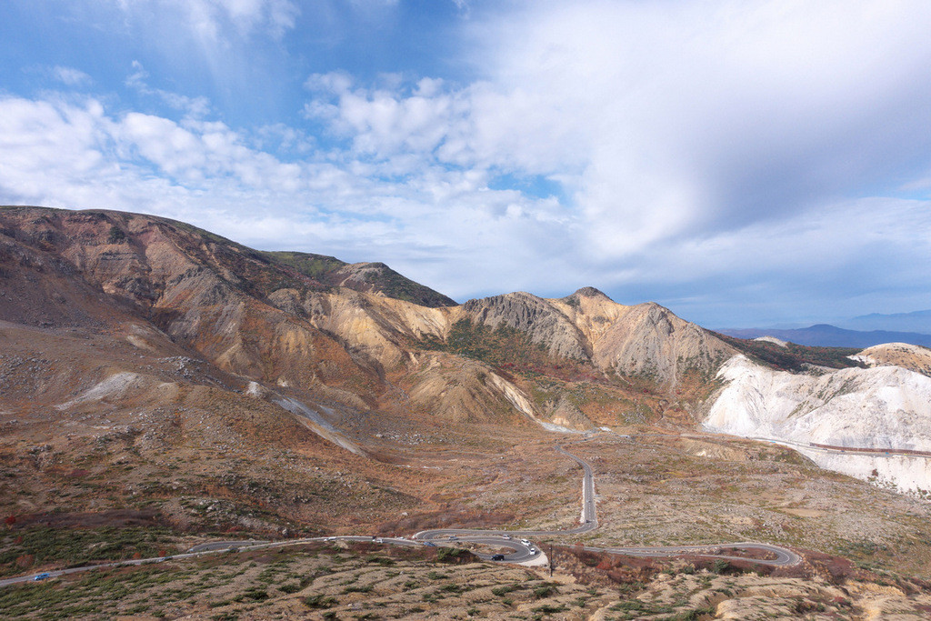 最高地点近くにある浄土平では、火山活動によりできた荒々しい風景が続く、まるでどこかの惑星に舞い降りたみたいな気分を味あわせてくれる。