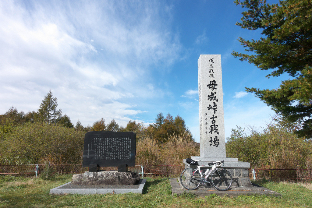 母成峠には駐車場があり、戊辰戦争での古戦場碑が建てられています。