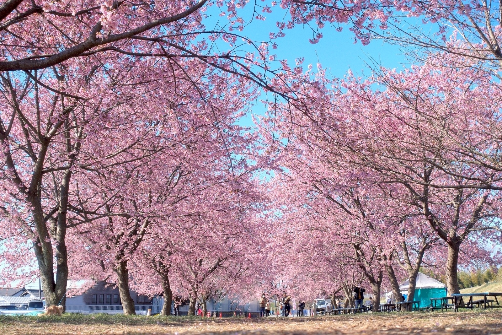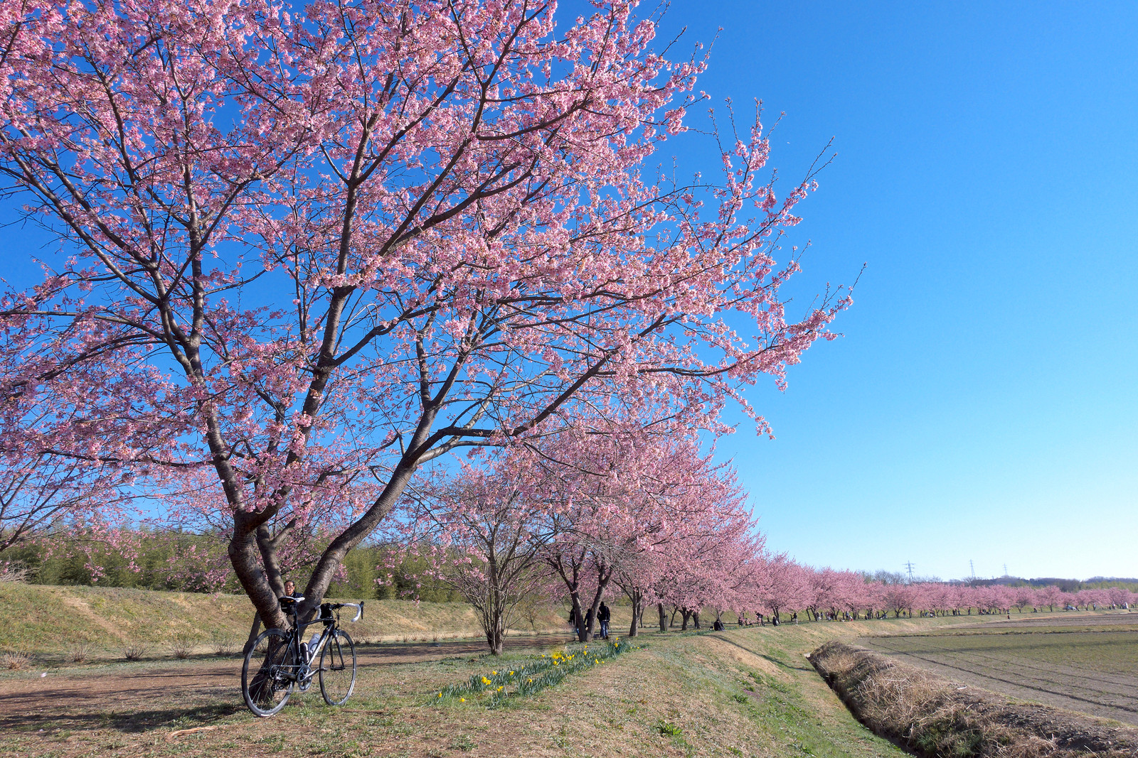 坂戸市内を流れる越辺川沿いに、延長1.2kmにわたり約200本の安行寒桜の並木があります。