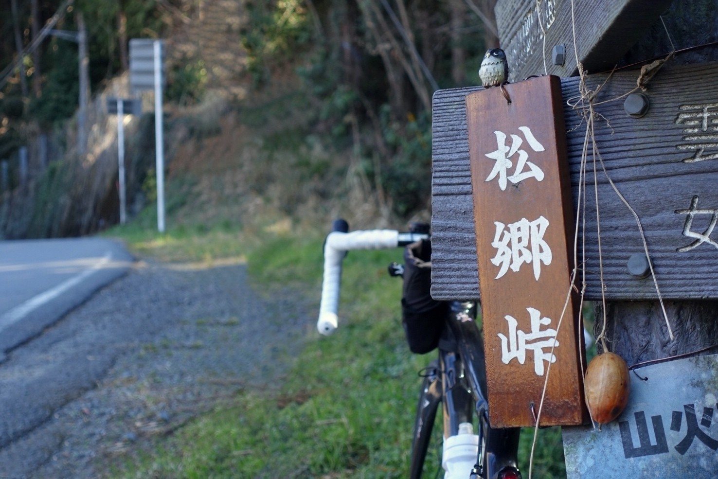 ちょっとした峠、「松郷峠」の道標がひっそりと掲げられている。