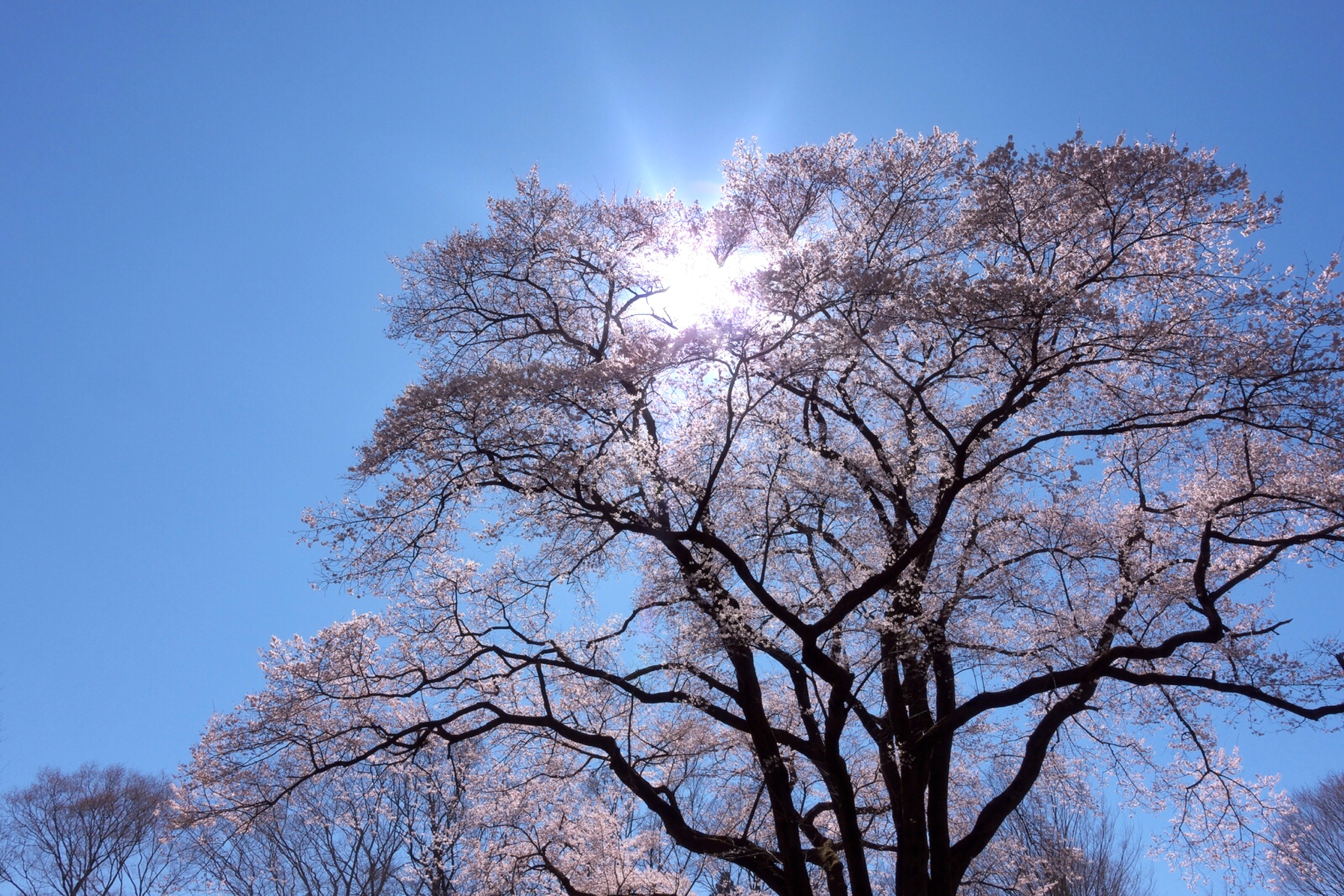 太陽光をバックにした桜のシルエットが綺麗ですねー