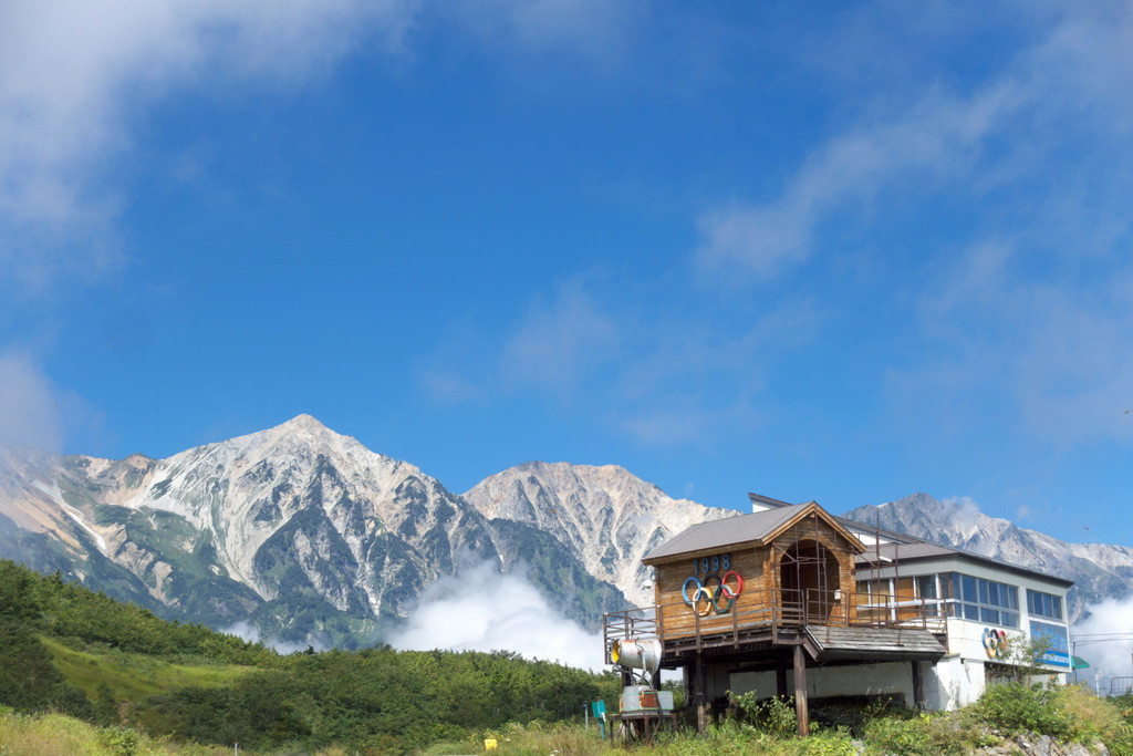 五輪マークがある小屋は、長野オリンピック女子滑降スタートハウスです。