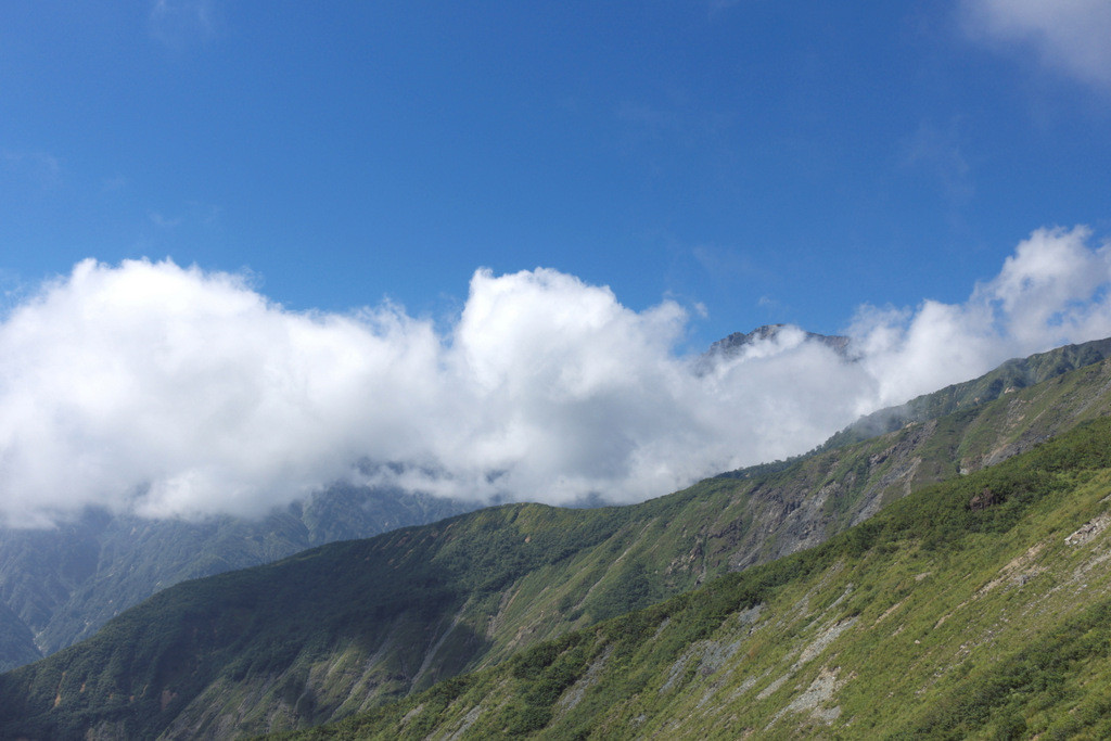 鹿島槍ヶ岳のスカイラインは雲の帯。台風の余波でしょうがないね。