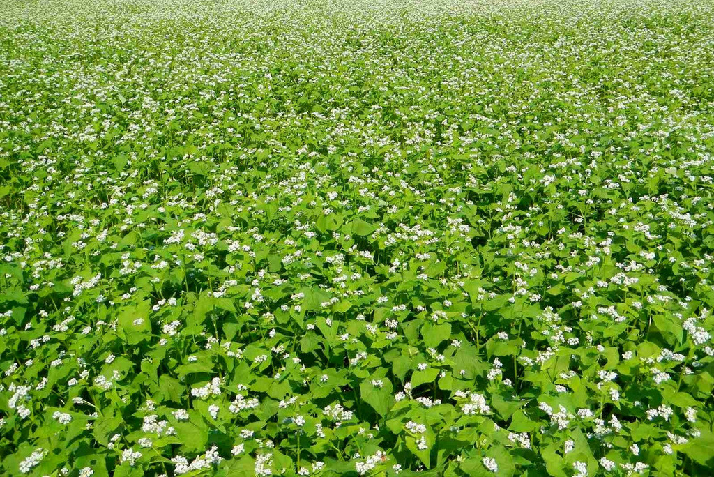 夏も終わりになろうかという季節、ソバの畑も、一面白いじゅうたんを広げたような光景ですね。