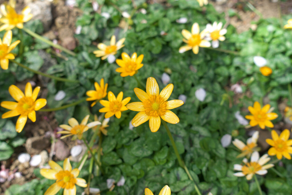 東昌寺の境内に、小さくてきれいな黄色が目を引くヒメリュウキンカが咲いていました。