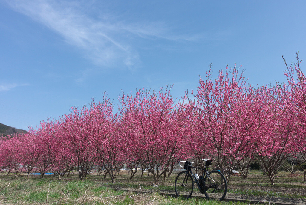 荒廃した農地を活用して、地域が景観形成のために始めたもので、花桃を中心に植えられています。