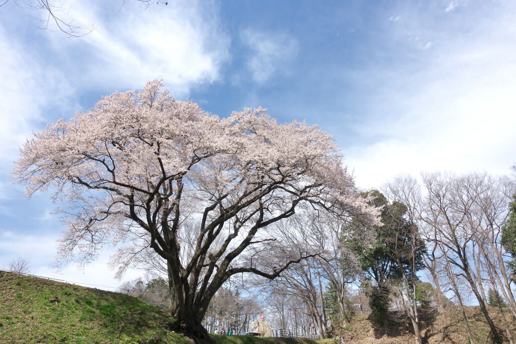 周囲が城跡なので人工物が少なく、一本桜とゆっくりと向き合うことができます。