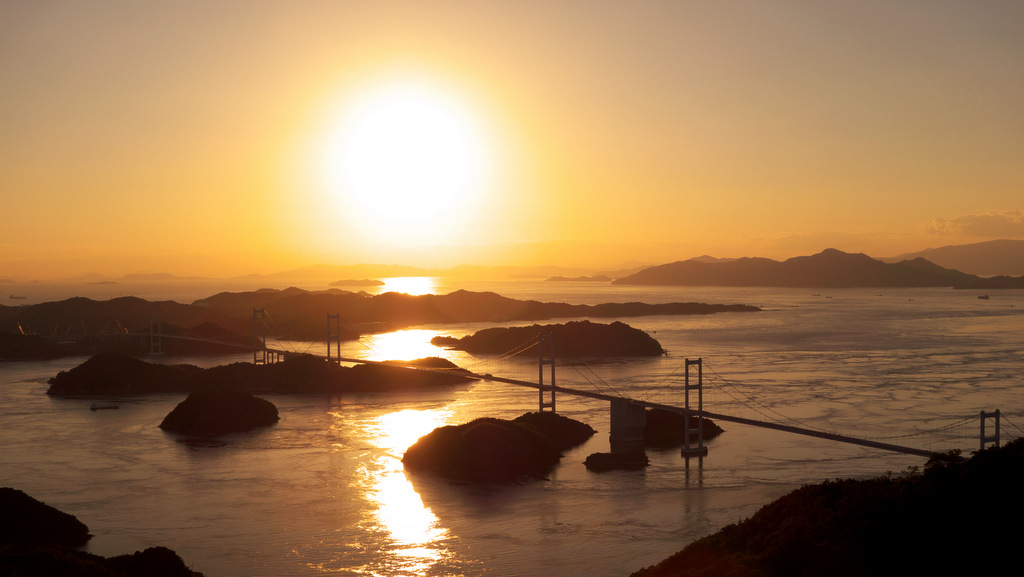 来島海峡大橋をしっかり眺めるには日中がベターですが、個人的には夕日が沈む様子がおススメですね。